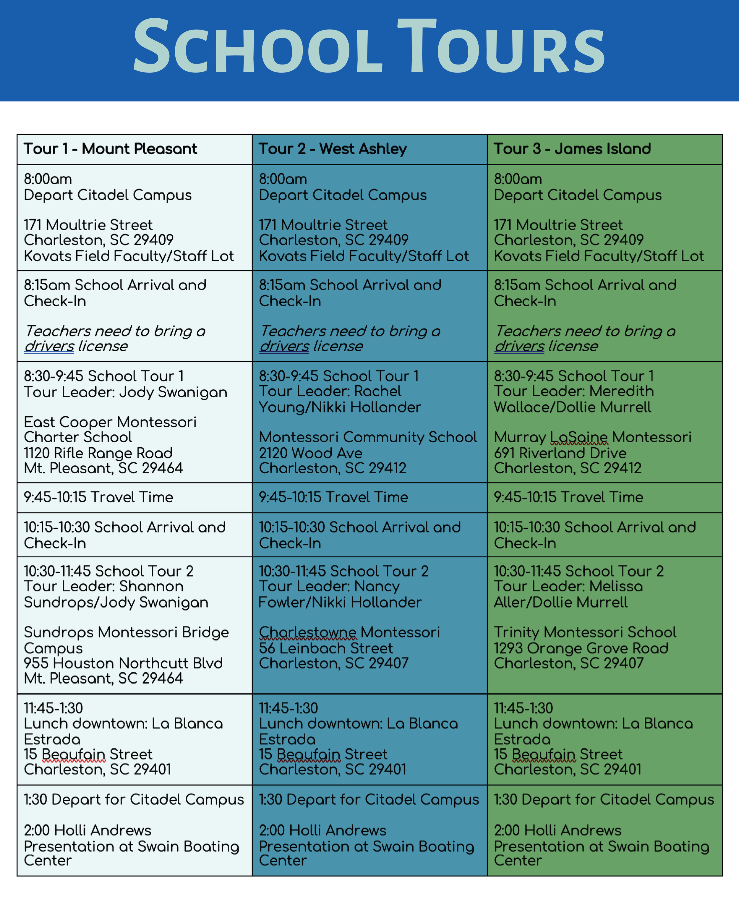School tour attendees will be able to choose one bus route on a first come, first serve basis. Each route will visit one public and one private program.